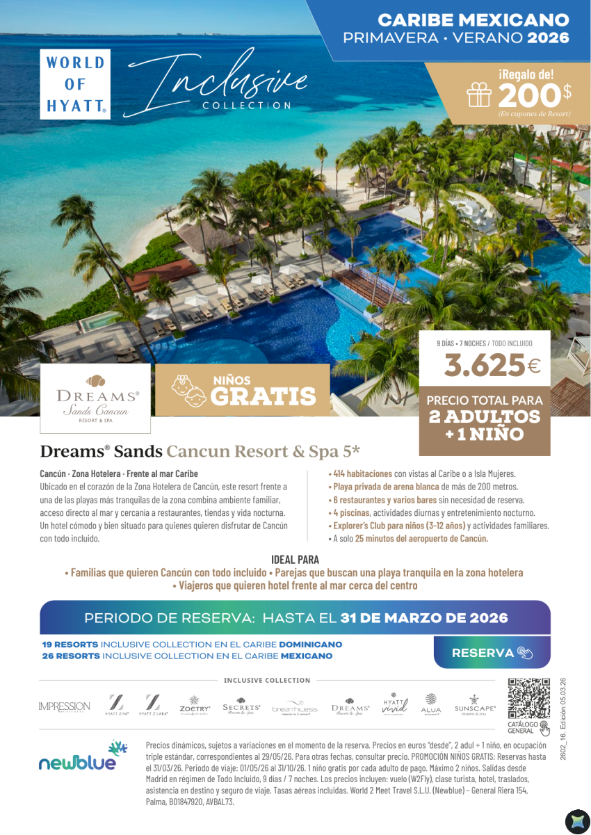 Cancún: 2 adultos + 1 niño desde 3.625€ | Dreams 5★ con NIÑOS GRATIS